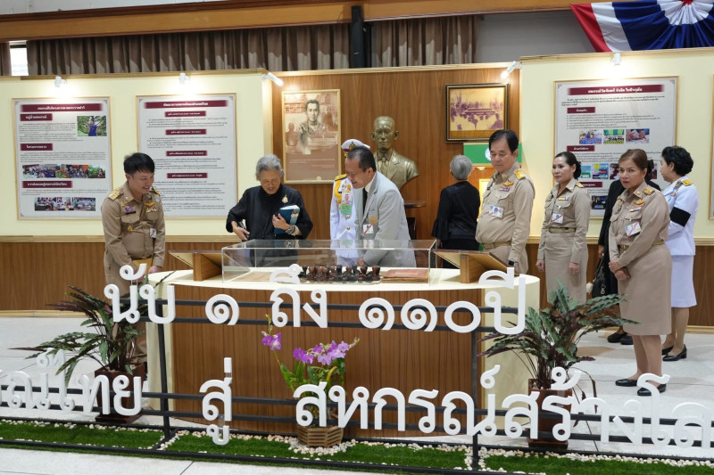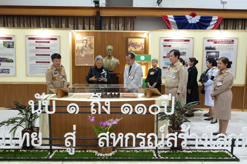 โอกาสนี้ สมเด็จพระกนิษฐาธิราชเจ้า กรมสมเด็จพระเทพรัตนราชสุดา ฯ สยามบรมราชกุมารี ทรงเสด็จทอดพระเนตรนิทรรศการของกรมส่งเสริมสหกรณ์ โดย นายนิรันดร์ มูลธิดา อธิบดีกรมส่งเสริมสหกรณ์ เป็นผู้ถวายรายงานประจำ จุดนิทรรศการ จุดที่ 1 “กำเนิดสหกรณ์ไทย และ 110 ปี การสหกรณ์ไทยสู่สหกรณ์ สร้างโลกที่ดีกว่า" นอกจากนี้ได้ทรงทอดพระเนตรนิทรรศการจากหน่วยงานต่าง ๆ อาทิ การเผยแพร่ความรู้ด้านการบัญชีสหกรณ์ จากกรมตรวจบัญชีสหกรณ์ การดำเนินกิจกรรมสหกรณ์ในโรงเรียนตำรวจตระเวนชายแดน โครงการทหาร พันธ์ดี จากกองทัพภาคที่ 3 โครงการอนุรักษ์พันธุกรรมพืช อันเนื่องมาจากพระราชดำริของมหาวิทยาลัยราชภัฏพิบูลสงคราม